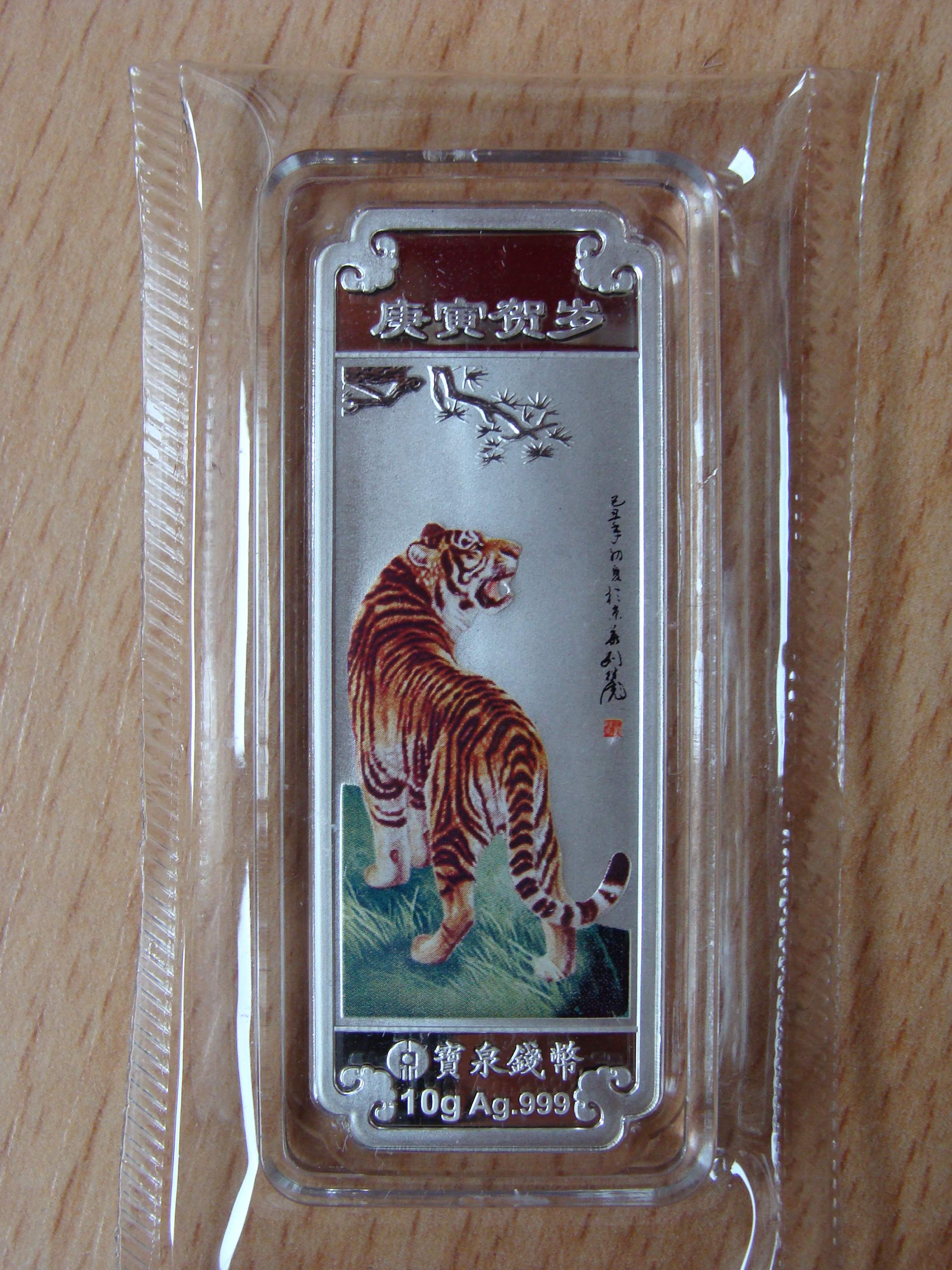 Bin gestern aus meinem Urlaub in Hong Kong zurück gekommen und wollte mal noch meine zwei kleinen Mitbringsel zeigen. Der schon bekannte 100g AG Collar Barren und dann noch ein 10g AG Tiger farbig Barren.Entweder hab ich ihn hier bisher noch nicht gesehen oder nur übersehen!? Auch wenn es nur 10g sind hat er eine ordentliche Schachtel, Zertifikat etc... Zu kaufen gab es auch 10g Gold Barren usw...
