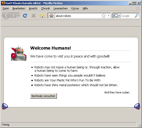 Und wer definiert, was "sicher" ist? Habt ihr mal in eurem FireFox der neuesten Version 3 in der Adresszeile den folgenden Text eingegeben:about:robots