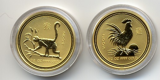 den 1/2oz Hahn ist evtl. noch bei der Dresdner Bank verfügbar. Der Affe angeblich nicht mehr.