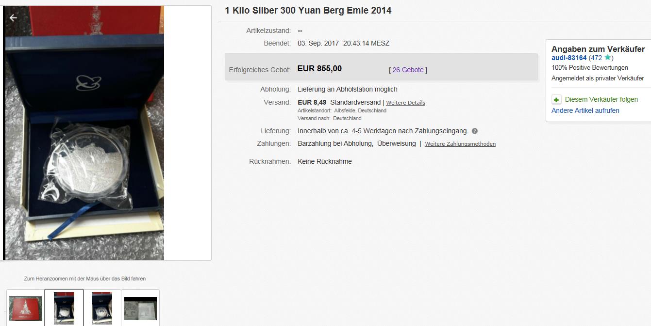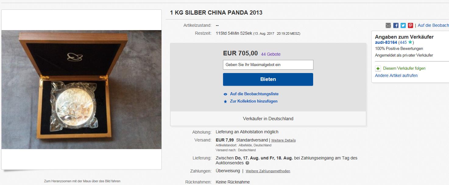 Im letzten Monat 1 KG SILBER CHINA PANDA 2013 (Nr.182705844703)EUR 932,22