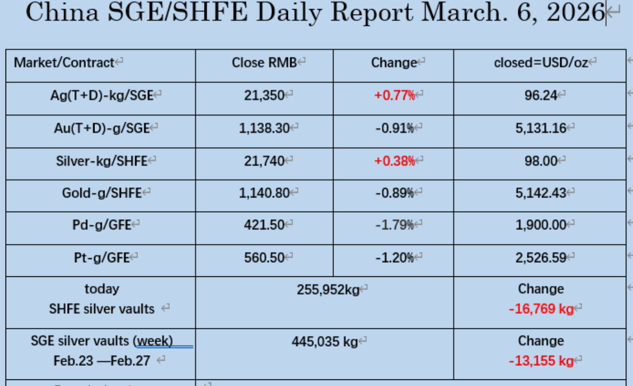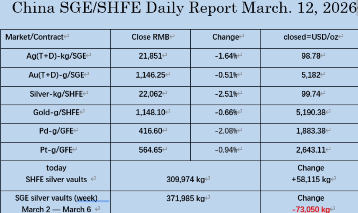 March 12, 2026, the PM markets data in China. I got a VPN and will try to post the data report every day, but not sure. Today, Chengtong Group's subsidiary Zhonggongmei Supply Chain injected 49.6 tons of physical silver into the Shanghai Futures Exchange's silver vault.