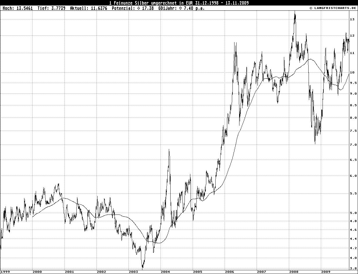 ...auf der Seite von Langfristcharts.de findest du auch einen Chart für Silber in Euro. Wie sich Silber da weiter entwickelt kann an dieser Stelle auch nicht verlässlich beantwortet werden!