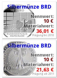 Sacht ma, geben die Spaßkassen immer noch alte 10€ Silbermünzen raus oder haben sie (bzw. die Erben) es inzwischen auch gemerkt, dass sie da 30€ Materialwert verschenken?