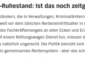 Ich stell's mal hier rein, akt Sendung Markt auf NDR, u.a. als Thema Ruhestand von Beamten mit 60 (Polizisten) bzw 62 Jahre, und die Rente für Angestellte mit 67 Jahren ...