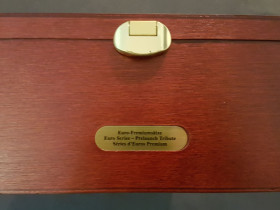 1 x flache Box für 2 Euro Münzen/Medaillen in Kapsel und mit Fächern für Zertifikate. Der obere Einleger kann herausgenommen werden und bietet Platz für 15 Münzen. Der untere Einleger ist fest in die Box verklebt, ist mit Ländernamen beschriftet und bietet Platz für 16 Münzen und 2 Fächer für Zertifikate.
