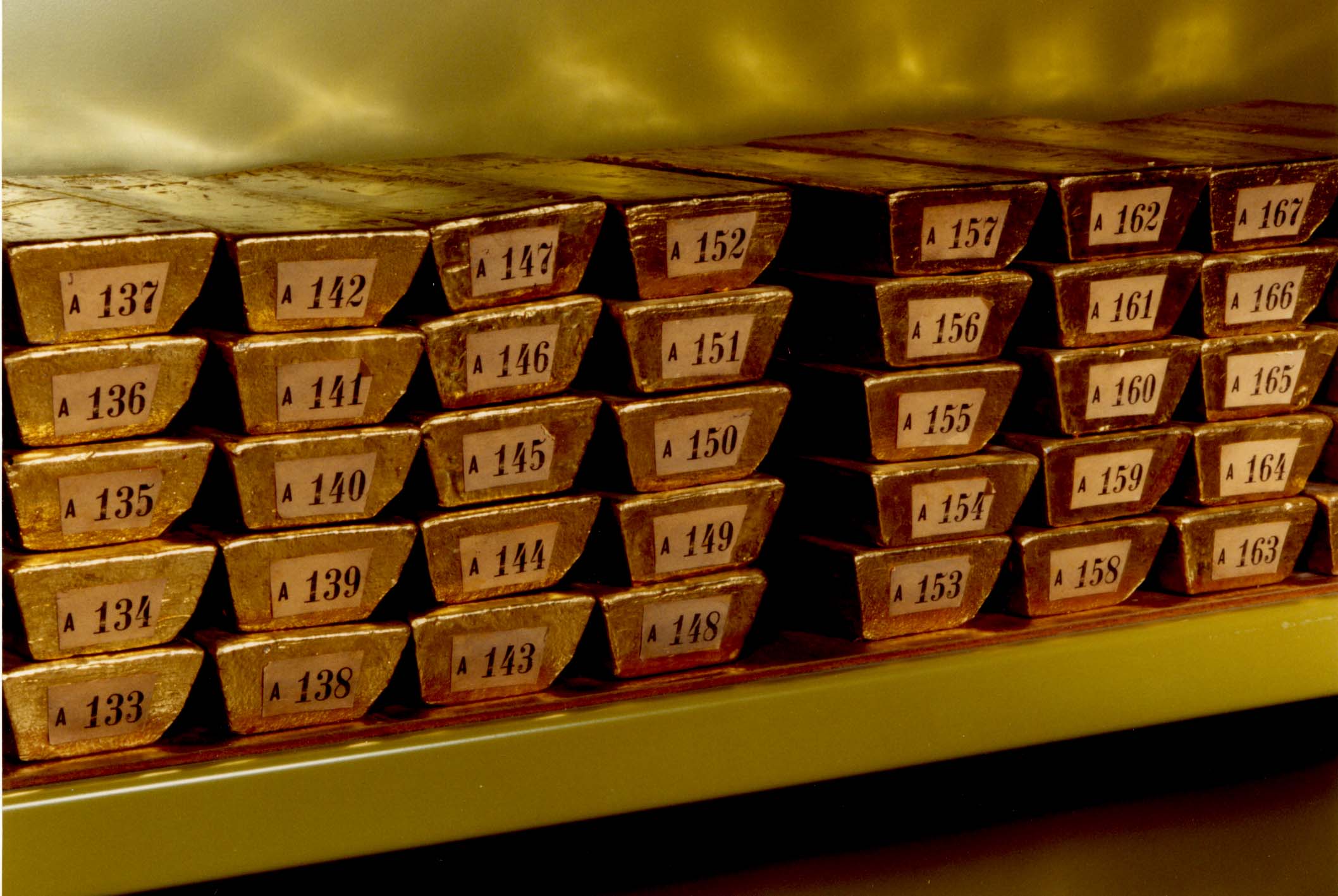 Das sind die Goldbarren aus dem Keller der Deutschen Bundesbank, erkennbar an den Inventarnummern an der Seite.
