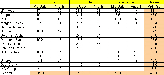 Die Zentralbankiers sagen unserer Quelle zufolge: "Laßt es geschehen, dann müssen die wilderen Investoren eben ihre Verluste einstecken. Es wird viel Schaden und viele Opfer geben, aber was Bear Stearns und Konsorten betrifft, wen interessiert es, wenn sie 25% oder mehr ihres Kapitals verlieren? Da ist sowieso alles viel zu hoch bewertet."