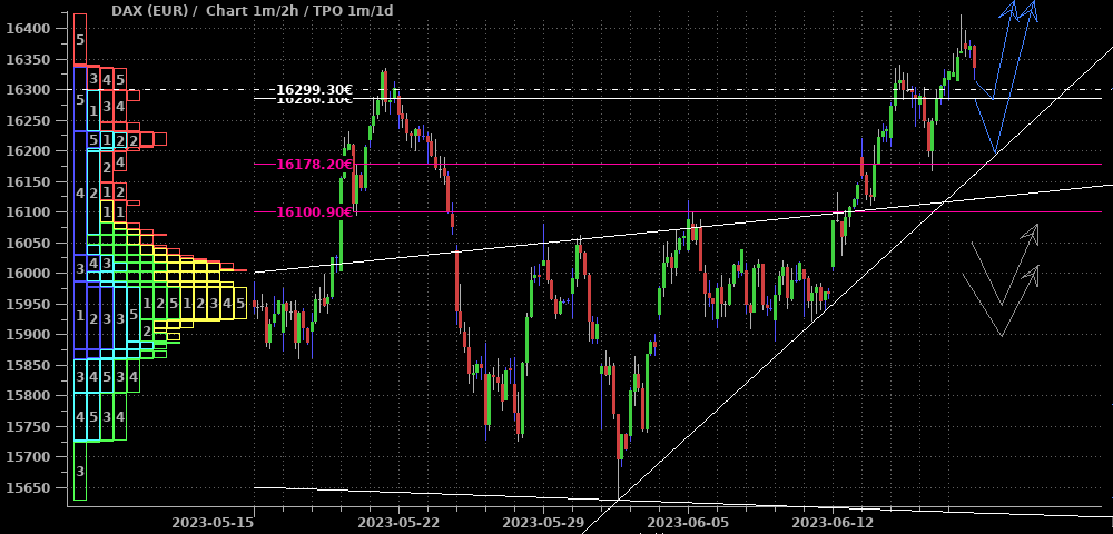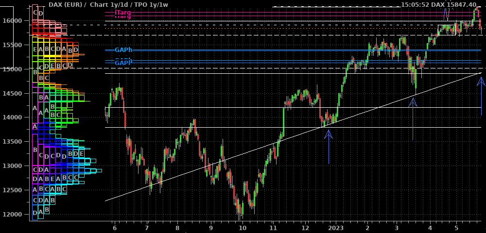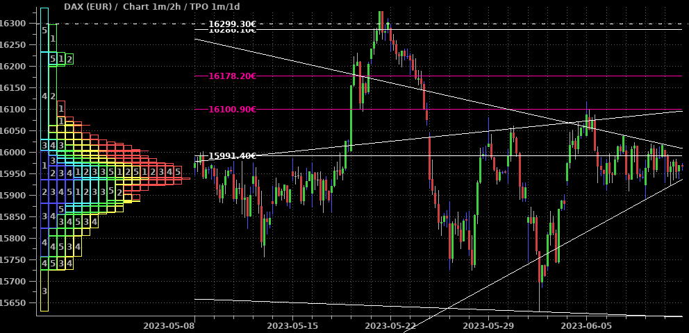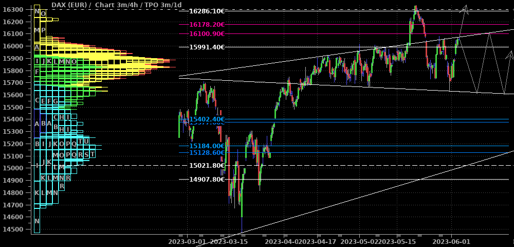 Der DAX verlief wie erwartet langweilig und erreichte noch nicht einmal sein unteres Minimalziel. Ich erwarte, daß er weiter in seinem Keil nach oben driftet, bis sich ein neuer Grund zum Abverkauf findet (z.B. durch die Kommentare zur nächsten Zinsentscheidung, oder weitere Rückschläge in der Berichtssaison). Solange sich aber kein derartiger Grund manifestiert, bleibe ich dem Markt fern.