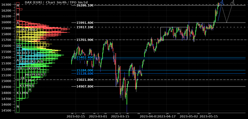 Der DAX machte keinen Hehl daraus wo er hinwill: oben heraus. Die Vorsicht in der letzten Woche, nicht short gegen die Oberseite der Range zu halten war also berechtigt. Da ein Allzeithoch selten alleine kommt und zudem nun eine monatelange Seitwärtsphase nach oben aufgelöst wurde, gilt das Shortverbot auch weiterhin. Auch wenn dies fundamental schwer nachvollzehbar ist, kann ich mir eine langsame zermürbende Aufwärtsphase vorstellen, die bis zum Jahresende noch einige tausend Punkte darauflegt. Vielleicht wird die fundamentale Begründung auch noch nachgereicht, indem z.B. in den nächsten Tagen eine Lösung des Ukraine-Konfliktes näher rückt. Ein Rücksetzer auf 16.000 wäre technisch unbedenklich und taktisch gesehen ein Kauf.