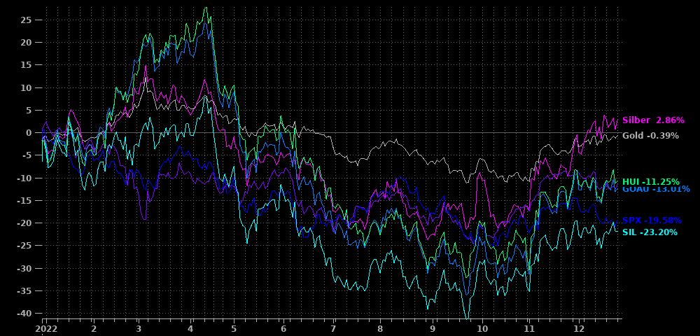 Die Edelmetalle kamen zum Wochenschluß nicht vom Fleck, ebensowenig der DAX. Nur die amerikanischen Indizes legten zu, angeschoben von sich erholenden Technologierwerten. Öl und Gas gaben nach. Unter den beobachteten Werten fielen MAG negativ (s.u.) und SILV positiv aus dem Rahmen.
