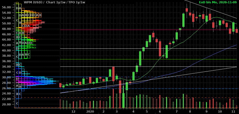 Charttechnisch sind sie in einer spannenden Situation mit einem möglichen Fehlausbruch über den Abwärtstrend. In meinen Augen muß sie jetzt drehen oder einen abschließenden Einbruch hinlegen. Setzt sich die Underperformance gegenüber dem PoG fort und hält die $30 nicht, sind die blaue 200Tage-Linie sowie besser noch die $22-$24 interessante Gelegenheiten, um günstig aufzustocken. Also kauft mir dort nicht alle Aktien weg
