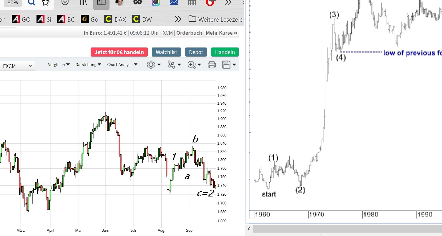 C sieht aus nach expandierendem Dreieck, kommt ebenso wie ein aufsteigendes diagonales Dreieck in Welle 5 bzw. in Welle C selten vor.da die Stimmung für Gold gerade sehr negativ ist spricht vieles für dieses inverse SKS-Szenario. Meiner Meinung nach ...