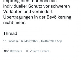 Die Impfung bietet grundsätzlich einen guten Schutz vor schwerer Erkrankung und Hospitalisierung durch COVID-19, dies gilt auch für die Omikronvariante.”Die Vermeidung von Infektionen (Fremdschutz) ist entfallen