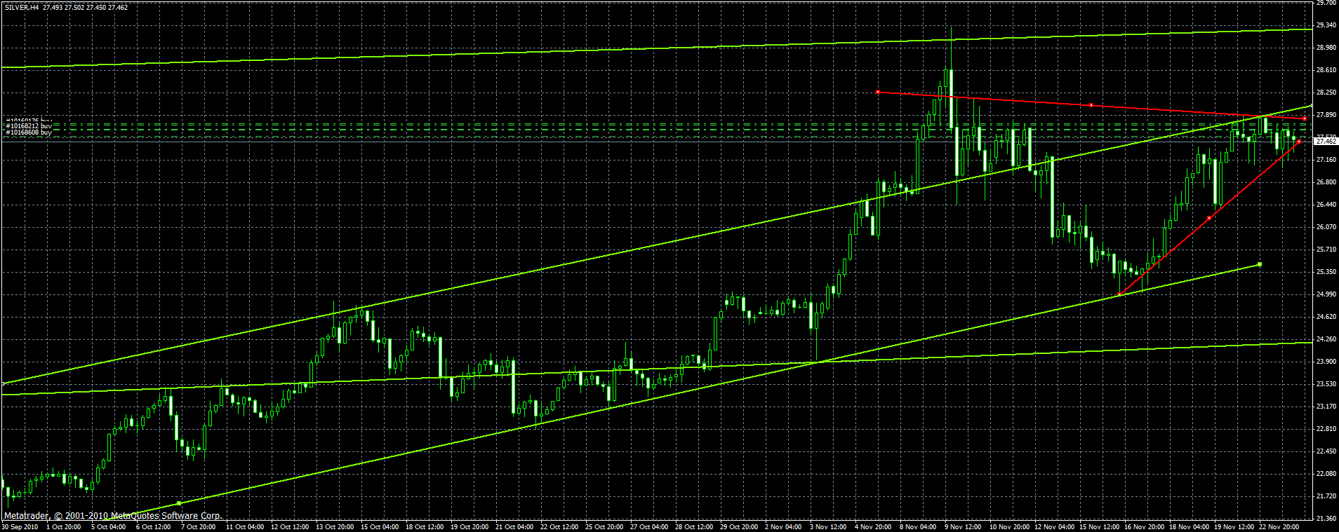 gerade heute bin ich mir nicht sicher, gold ist abgeprallt, schöne vorstellung, silber allerdings scheint den weg nach unten zu gehen, abprall von unten: