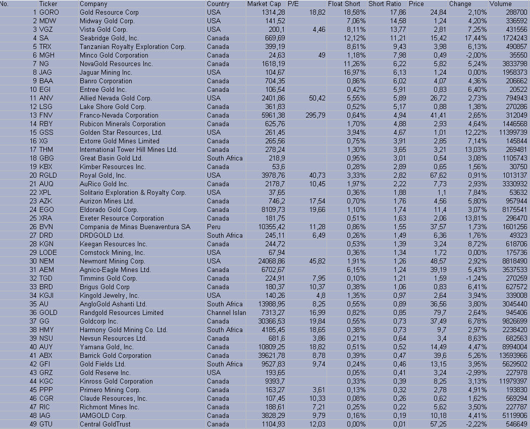 Aktueller Spitzenreiter in CA/USA ist GORO .. wer sonst! VGZ ist imo ein guter Kandidat für einen schönen squeeze sollte dieses Szeanrio eintreten, bei PR-GORO verbrenn ich mir lieber nicht die Finger .. glta