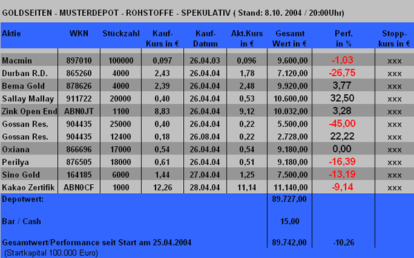 Das sind natürlich positive Bedingungen für unsere Musterdepotwerte, welche in dieser Woche im Kurs auch mehrheitlich zulegen konnten. Beim konservativen Depot können wir damit den Gewinn ausbauen, beim spekulativen Depot die Verluste weiter verringern.