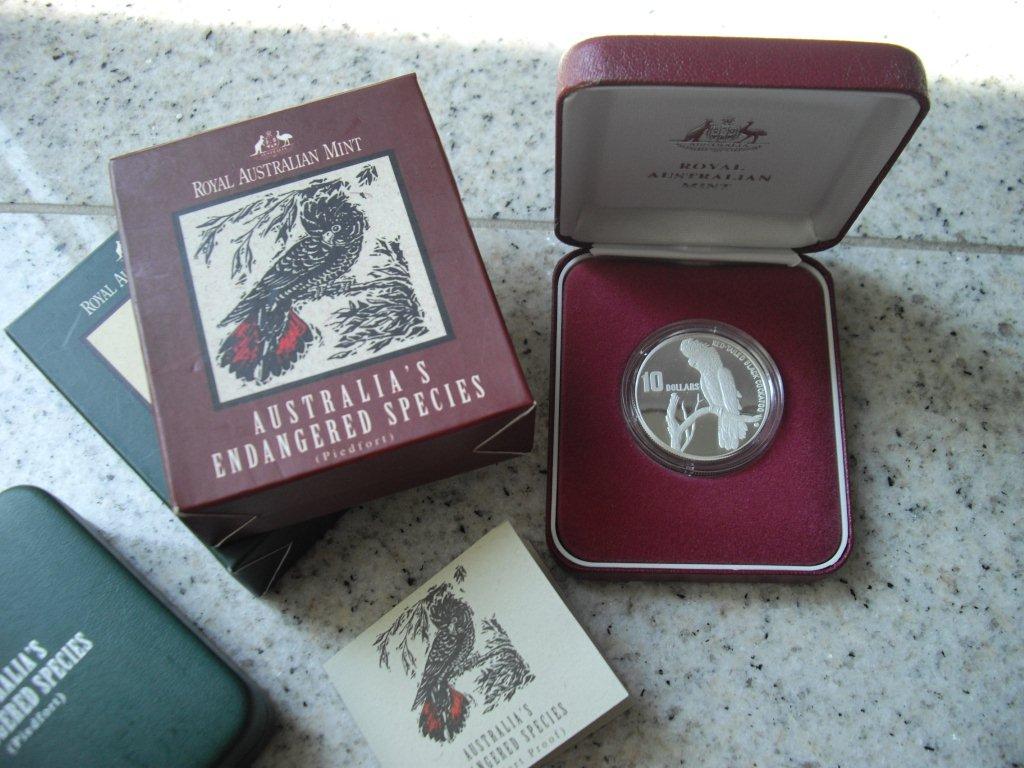 Die Proof Münzen der Serie 'Birds of Australia' der RAM welche von 1989 bis 1994 erschienen sind, wurden als 10 Dollar Münze herausgegeben, einmal in der Standardvariante mit 20 Gramm und als Piedfortvariante mit 40 Gramm, jeweils in 925iger Silber. Die Serie wurde dann von 1995 bis 1998 ergänzt um weitere 10 Dollar Münzen 'Endangered Species', welche ich hier auch noch vorstellen werde.