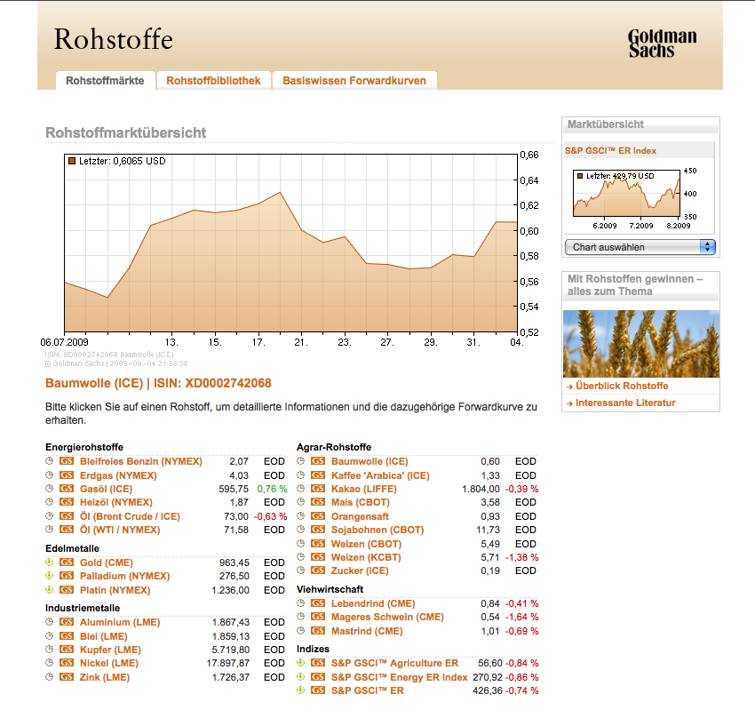 die seite ist die rohstoffseite von goldman sachs auf yahoo finanzen