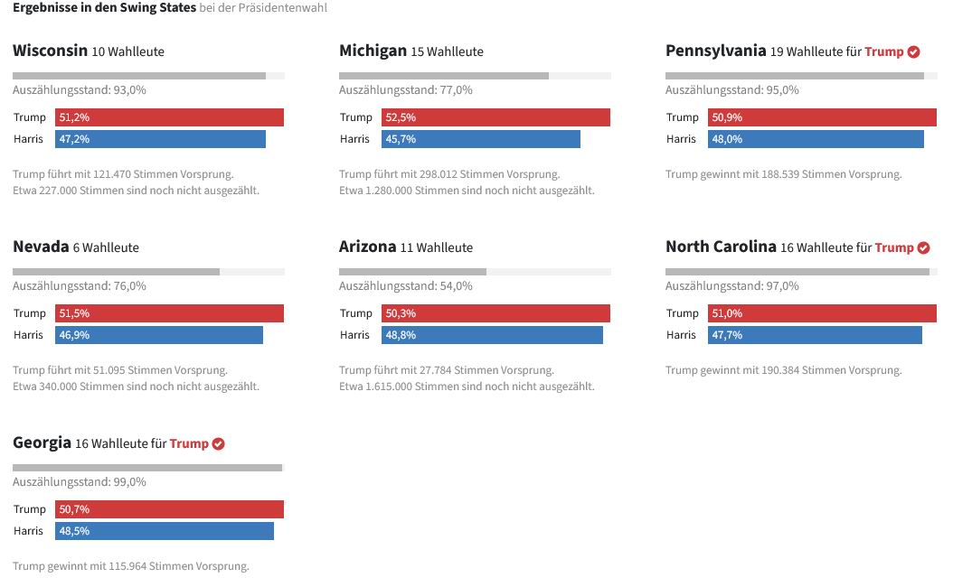 ... würde es so bleiben, wären alle 7 von Trump gewonnen, 6 davon gekippt im Vergleich zu dem offiziellen Ergebnis in 2020