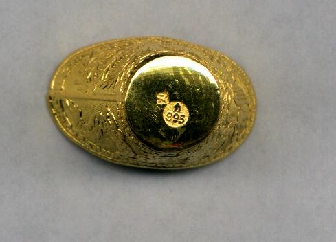 aussage des "verkehrten" stempel`s.einen kann ich leider nicht richtig ablichten: ein schmuckstück von jm über 100,20 gramm! jepp, genau: 100,20 gramm. da ist denen wohl während des gusses das "material" ausgegangen. haben sich aber