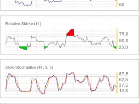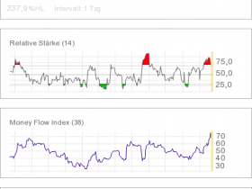 Die grüne Linie sind 50 Tage, die rote 200. Wenn grün rot nach oben durchkreuzt, geht es heidewitzka, fallera.