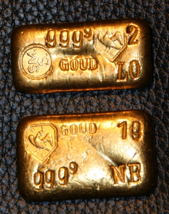 Und so wage ich hiermit einmal den Anfang der Fortführung dieses Fadens mit Goldbarren, die zwar nicht im tiefen Wasser, wohl aber in der Erinnerung weitgehend versunken sind und heute einem mysteriösen Hersteller namens "Bugenhat" aus Belgien zugeschrieben werden.