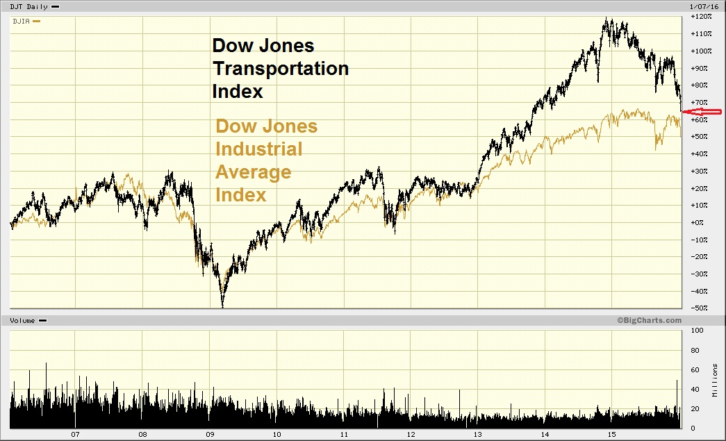 PPS: Dow Transportation im freien Fall ... unter sichtbarer Zunahme des durchschnittlichen Handelsvolumens seit 2014.