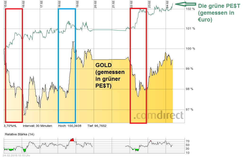 Der Barrick Put ist jetzt exakt auf Kaufniveau (das heisst er hat immerhin bisher den Spread reingeholt) und hat sich noch nicht entschieden, ob er ein Fehlinvestment oder die tief gehängte Prozent-Hängematte für den nächsten Edelmetall-Wert im Depot werden will! ![]()