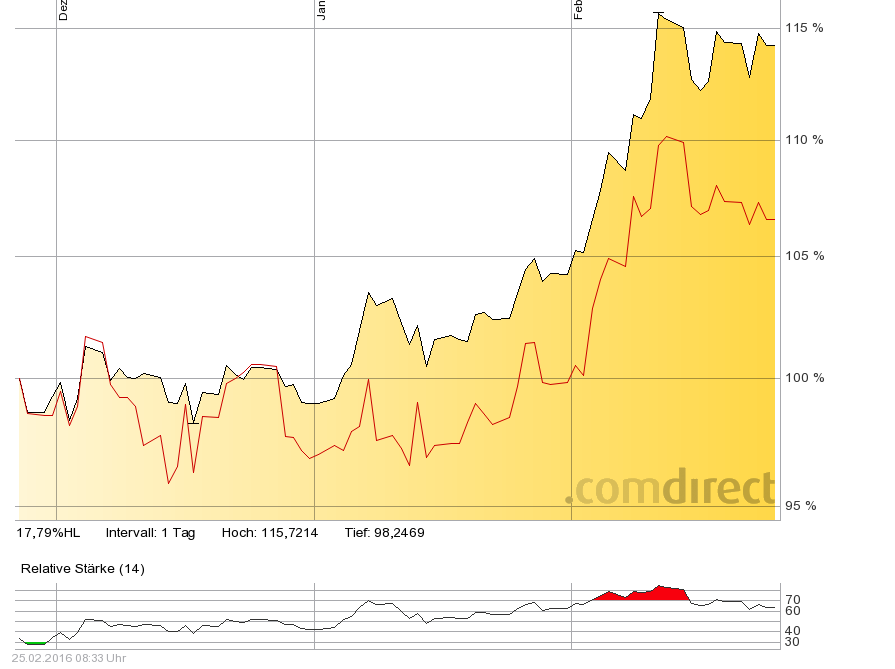 Eigentlich glaube ich ja, dass sie erst noch einmal zurück kommt, aber das reale Risiko in der derzeitigen überhitzten Stimmung danebenzugreifen und sie schlicht zu verpassen, wenn sie wirklich abhebt, hat mich dazu bewogen sie wieder zurückzukaufen mit einem Teil meines Cash, das ich aus den Nickelminen vor ein paar Tagen angehäuft habe. Die Position ist eine gute mittelgroße bis große Position undf damit etwas kleiner, als vorher; ausserdem bin ich auch ein klein wenig billiger rein gekommen, alles in allem berechnet. Dennoch hätte es genügt, die Position einfach etwas zu verkleinern, anstatt sich dieses Hin- und her anzutun. Derzeit lerne ich wieder mal etwas dazu ... denn eine solche überhitzte Stimmung hab ich bewusst noch nicht allzu oft miterlebt ... 2004, 2006, 2009 und 2011 halt ... .[smilie_happy]