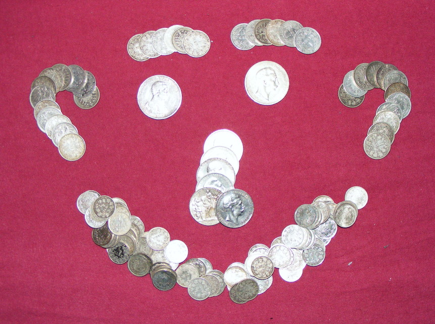 Hm, so mach ich's ja auch, das meiste in 1oz-Anlagemünzen. Die Reichsfünfer und anderes silberhaltiges Ex-öffizielles-Zahlungsmittel hat es mir eben aber auch angetan. Ich kann nix dafür ![]()