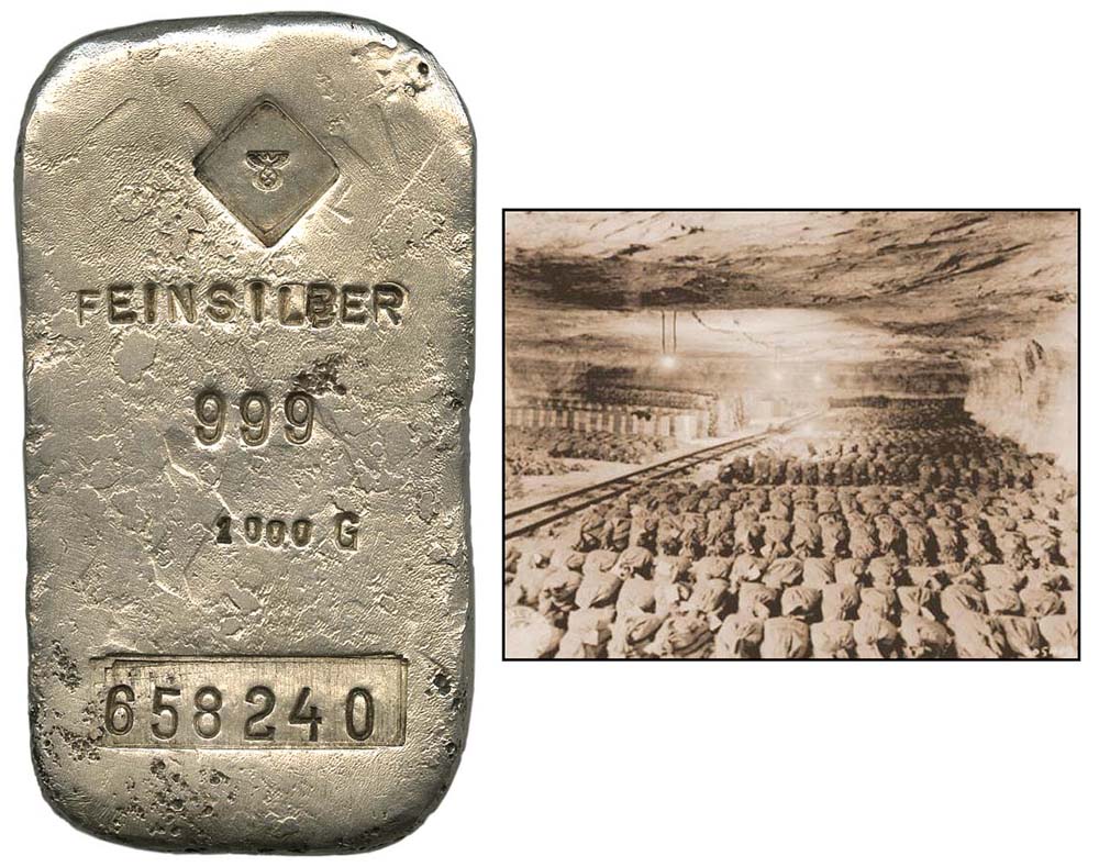 (habs mit google translate übersetzt,daher nicht so genau)Die einzige Möglichkeit, die letzte bekannte verbliebene Exemplar eines Stückes von einem Kilogramm des berüchtigten Bergwerk Merkers Schatz zu erwerben, von den Nazis gegen Ende des Zweiten Weltkriegs gefangen genommen. Nach unseren Versender, habe seinen Vater, der in der RAF war, diesen Artikel in einem Poker-Spiel von einem amerikanischen Marine am Ende des Krieges. Das Bergwerk Merkers Treasure enthalten eine enorme Menge an Gold und Silber, viel von den Zentralbanken in Europa, die von Deutschland erobert worden waren beschlagnahmt plus von Gruppen und Einzelpersonen. Das ein Kilogramm bar, mit Nazi-Adler & Hakenkreuz in Diamanten versehen ist gestempelt "Feinsilber 999 ', '1000 G' und die Zahl '658240 'in einem Rechteck. Nach unserer Kenntnis wurden alle 1 kg Bars mit der NS-Insignien aus diesem Schatz eingeschmolzen. Wir wissen nicht genau, ob diese Leiste dental Silber enthält, aus dem Holocaust. Ein erstaunliches Stück der modernen Geschichte. Ideal für den Sammler des Zweiten Weltkriegs, Nazi, Holocaust oder numismatischen (Barren) Memorabilien.
