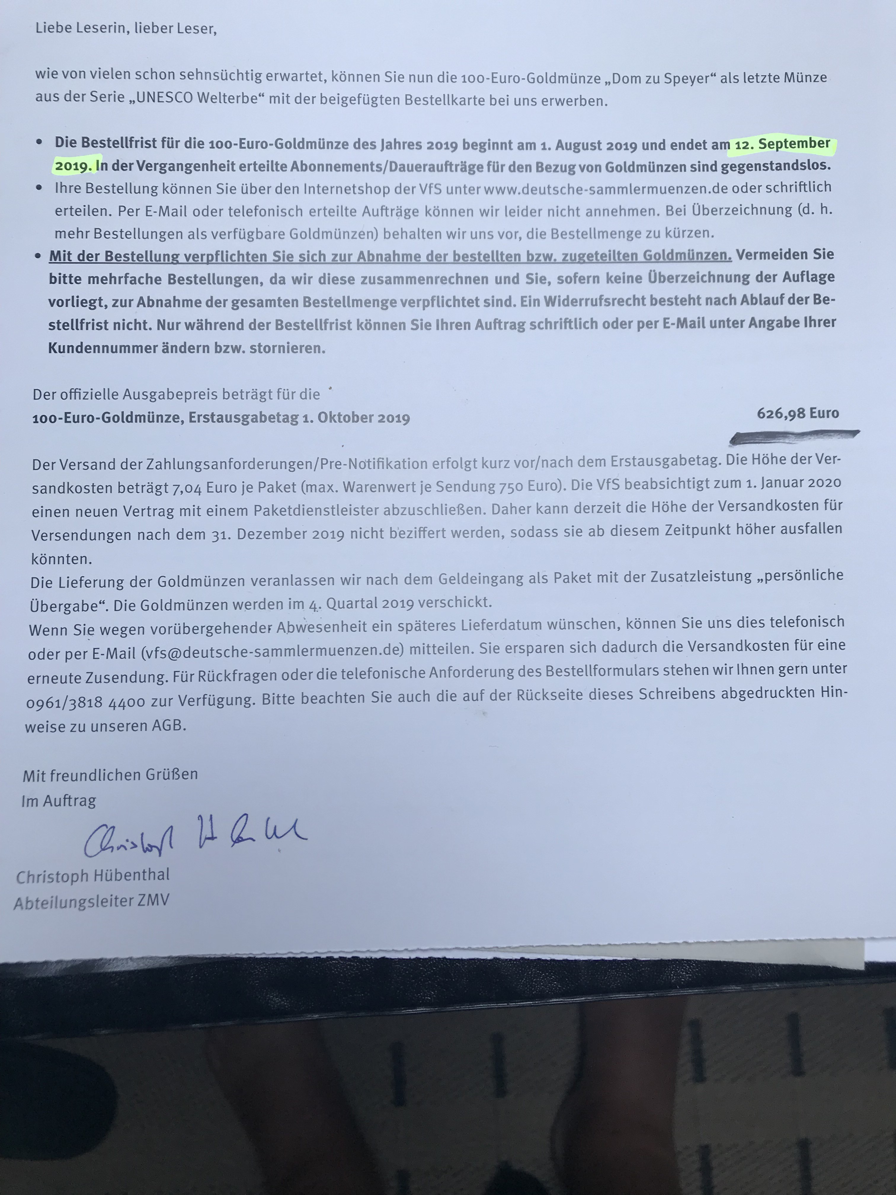 Bekommt man dann die Münze für das Geld oder wird da angepasst, ist recht günstiges Gold bei VfS zu haben.