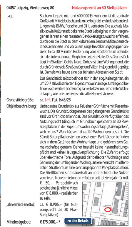 1m² Grundstück verbunden mit dem Nutzungsrecht an 30 PKW Stellplätzen.