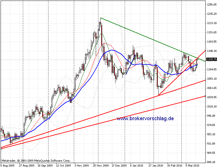 Angenommen dies ist bei einer vermeintlich sehr hohen Trefferquote von 70% der Fall. Das bedeutet, dass bei 70 von 100 Trades 5 Punkte gewonnen und bei 30 von 100 Trades 10 Punkte verloren werden. Dann stehen einem Gewinn von 70x5=350 Punkten ein Verlust von 30*10=300 Punkten gegenüber. Die hohen 70% relativieren sich so sehr schnell. Es wird dabei aber auch jeweils mehr riskiert als gewonnen werden soll. Eine schwache Tradephase kann in einem solchen Fall den ungünstigen Effekt der notwenigen hohen Trefferquote noch verstärken da hohe Drawdowngrößen wahrscheinlich werden wenn prozentual die Positionsgrößen festgelegt sind.