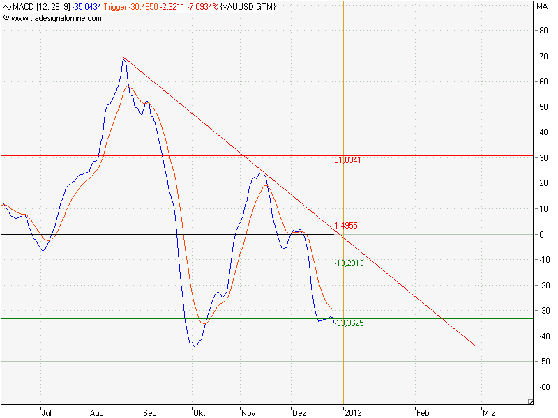 zum gold. der macd hat ein negative divergenz, vielleicht gibt das einbißchen hoffnung und unterstützung. aber wie woernie meinte,geben wir der sache nicht also viel an bedeutung. ich wäre zufrieden, wenn gold zwischen 32 und 64er im bwegung bleibt und dann in der 2 hälfte des jahres dann richtig ausbricht. Bis jetzt bin auch einwenig negativ gestimmt und zum lachen ist mir gar nicht. ich würde sagen,beobachten und abwarten!