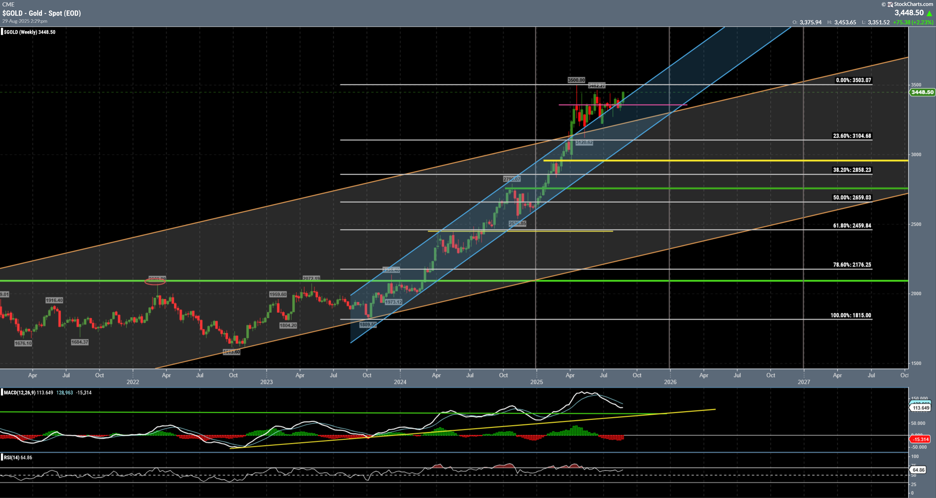 Hui ist in der Nähe vom ATH, auch der unter Kanal findet hier seinen Widerstand. Das wird hart und ein Überschießen kann ich mir erstmal schwer vorstellen, man muss gucken was passiert, wenn Gold die 3500 knacken sollte, was hier passiert. Eher skeptisch hier!!!