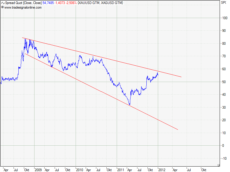 charttechnik auf das gs ratio angewendet. sieht bullish für silber aus. gs ratio von 1:10 bis 1:15 schon im nächsten jahr?