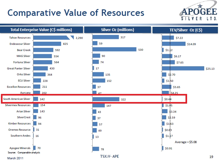 aus einer präsentation von apogee silver. beinhaltet daten vom märz.
