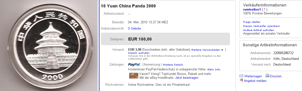 Unwissenden Käufer da haben Sie 232€ für die Münze