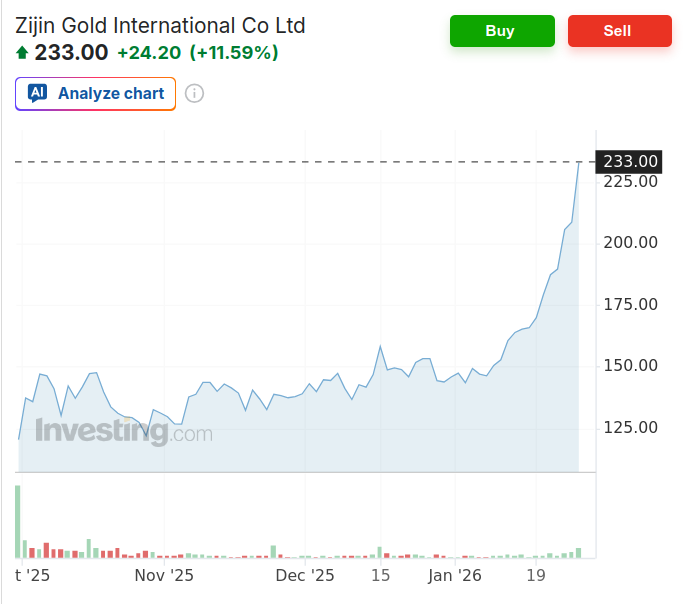 Zijin Gold heute mit Kurssprung + 11,59 % auf 233 HKD ![]()