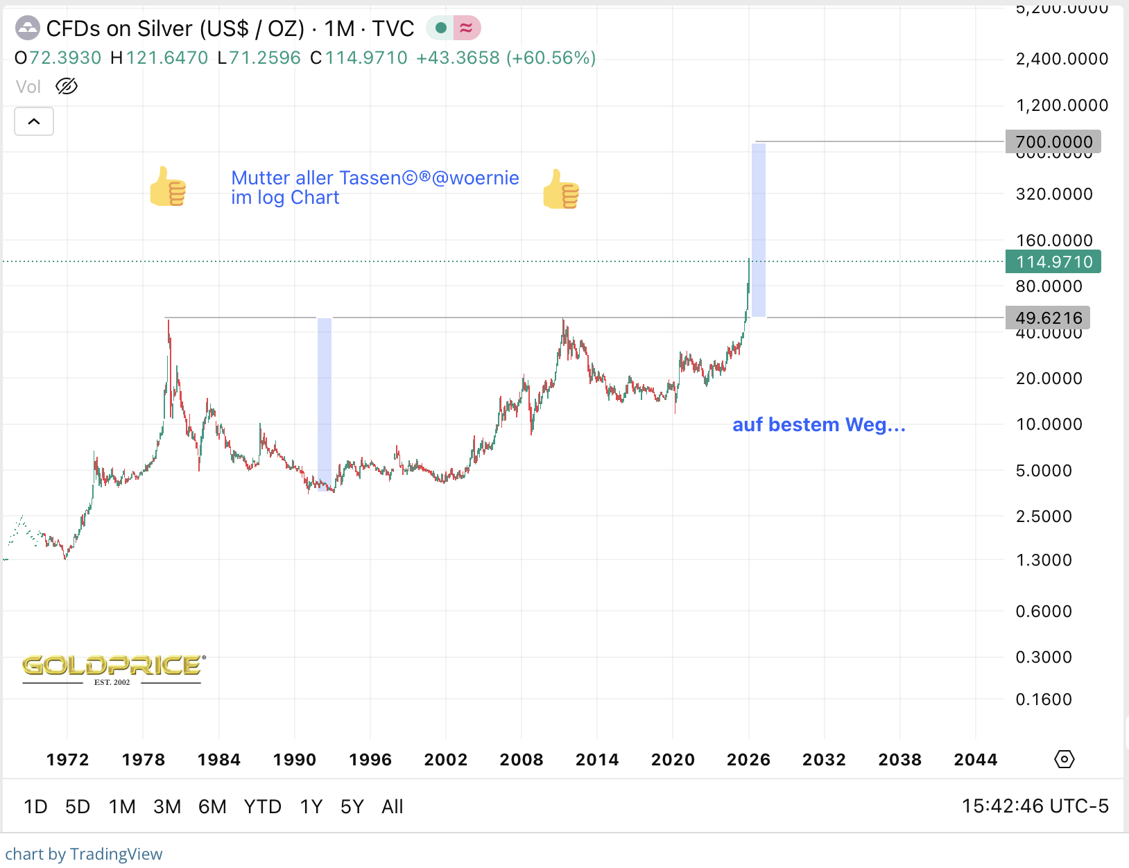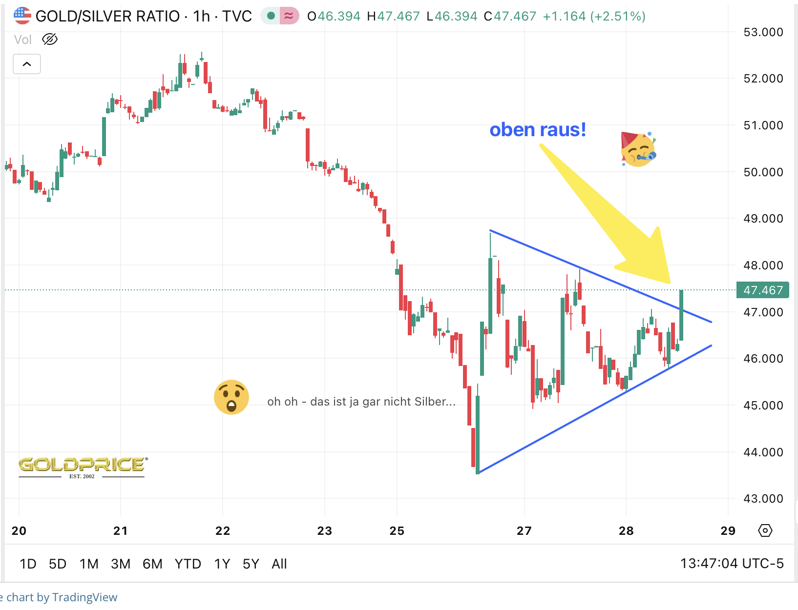 Der Kurs der Metalle ist mir gerade relativ egal, Hauptsache, die Voraussetzungen für mein Wunschkonzert werden erfüllt.