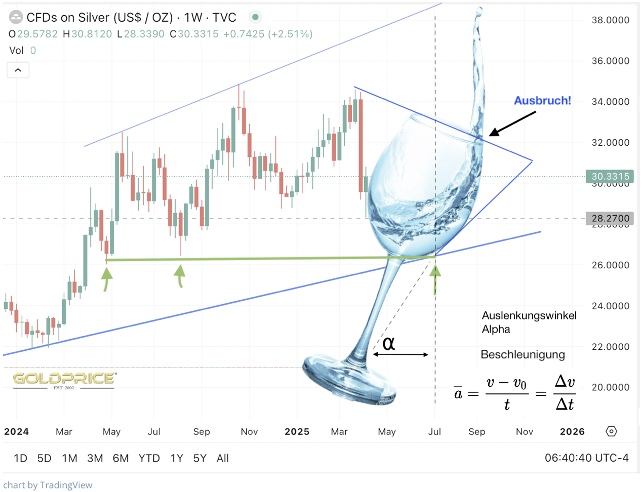 Zumal der darunter liegende Chartbereich (blau gestrichelt markiert) keine wirklich erkennbare Formation beschreibt, die entsprechende impulsive Energie liefern könnte.