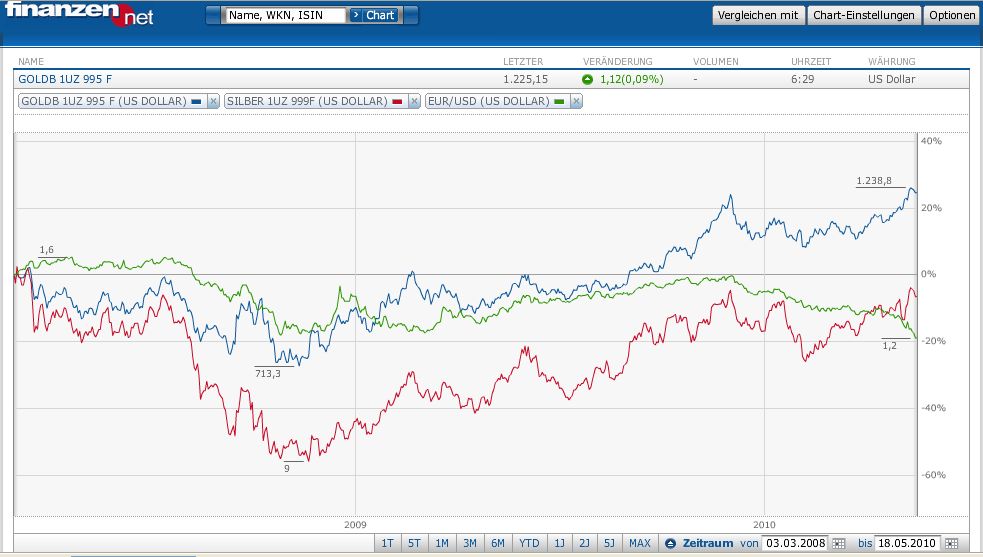 mit den neuen kursen kann ich mich nur schwer anfreunden, da ich immer an die guten alten zeiten zurück denke, wo ich das zeug für die hälfte kaufen konnte, selbst vor ein paar monaten war es noch deutlich günstiger...aber dennoch, ja ich kaufe immer noch, da ich vermute, dass uns der euro früh oder später um die ohren fliegt...letzte woche erst noch hab ich gold für 930-940 gekauft ich fand es teuer, aber wenn ich mir heute die krse wieder anschaue, war die entscheidung goldrichtig