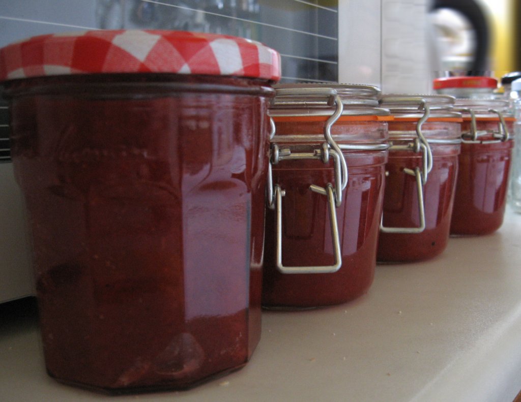Und um euch auf den Geschmack zu bringen, hab ich wieder ein paar Fotos vom alljährlichen Einkochen gemacht. Vielleicht bekommt der ein oder andere ja auch Lust. Hier die beiden Rezepte (Erdbeer- und Pflaumenmarmelade):